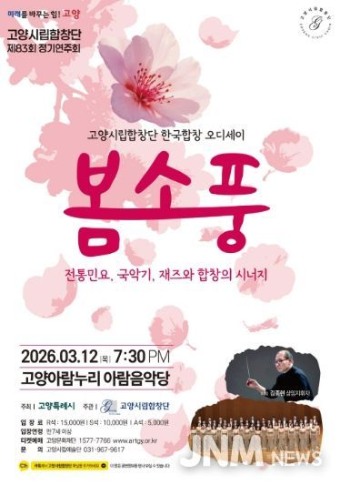 제이앤엠뉴스 | 고양특례시를 대표하는 문화사절단인 고양시립합창단이 오는 3월 12일 저녁 7시 30분, 고양아람누리 아람음악당에서 제83회 정기연주회 ‘한국합창 오디세이: 봄소풍’을 개최한다.