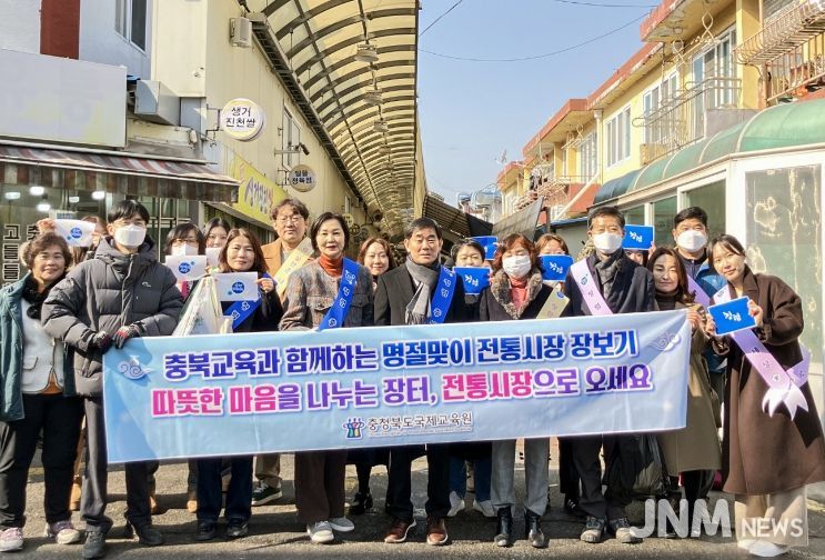 제이앤엠뉴스 | 충청북도교육청 직속기관 국제교육원(원장 서강석)은 설 명절을 맞아 12일(목), 사창시장에서 전통시장 장보기 행사 및 청렴캠페인을 실시했다.