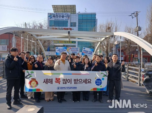 제이앤엠뉴스 | 옥천교육지원청은 설 명절을 앞두고 2월 12일 옥천공설시장에서 전통시장 장보기 행사와 청렴 실천 캠페인을 실시했다.