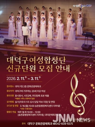 제이앤엠뉴스 | 대전 대덕구가 지역 문화예술 활성화를 위해 여성합창단 신규 단원을 모집한다.