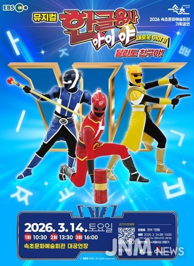제이앤엠뉴스 | 속초시는 3월 14일 10시 30분, 13시 30분, 16시 하루 3회 속초문화예술회관에서 뮤지컬‘한글용사 아이야 새로운 이야기-달라도 친구야’를 선보인다.