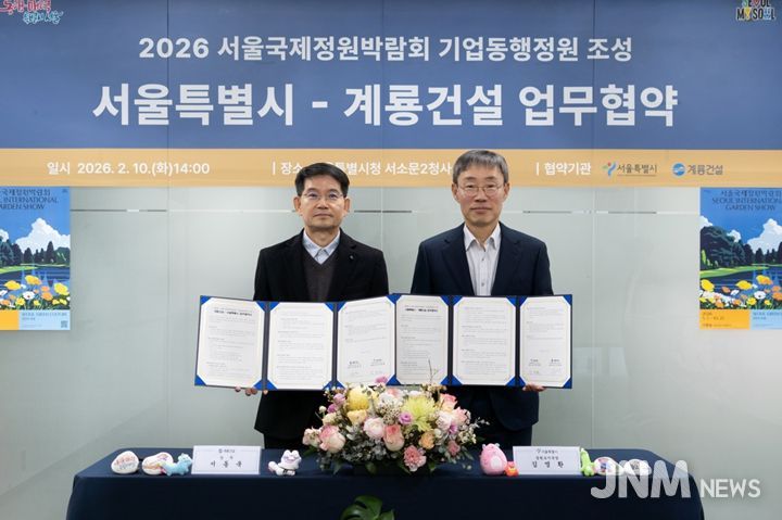 제이앤엠뉴스 | 서울시는 2026년 5월 1일에 개막하는 서울국제정원박람회 ‘기업동행정원’ 조성을 위해 계룡건설과 업무협약을 체결하고 ‘회복의 과정’을 담은 정원을 선보인다.