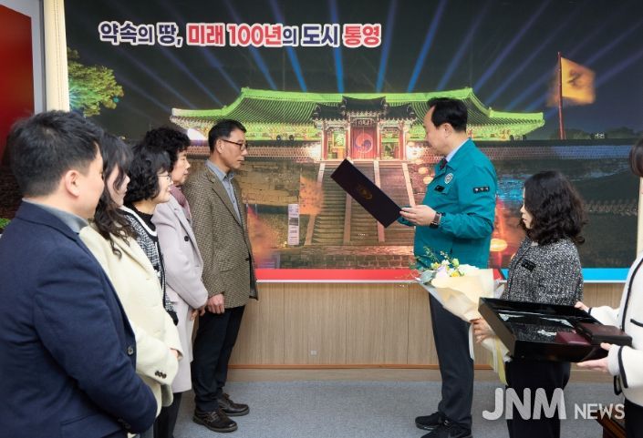 제이앤엠뉴스 | 통영시는 지난 23일 시장 집무실에서 6·25전쟁에 참전 유공자에무성화랑무공훈장을 전수하는 행사를 개최했다.