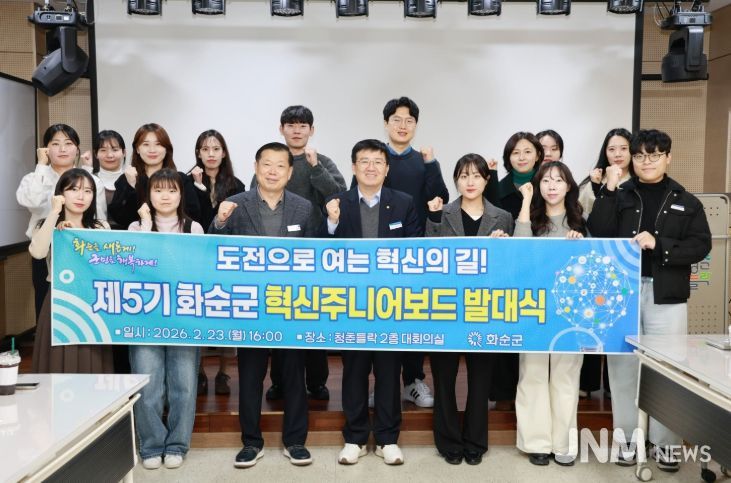 제이앤엠뉴스 | 화순군은 지난 23일 청춘들락 2층 대회의실에서 ‘제5기 혁신 주니어보드’ 발대식을 개최하고, 군정 발전과 조직문화 혁신을 위한 활동에 나섰다고 밝혔다.