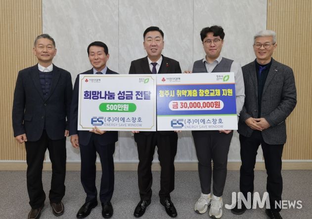 이와 함께 ㈜이에스창호는 취약계층을 지원하는 데 사용해 달라며 현금 500만원도 기탁했다. 기탁금은 충북사회복지공동모금회 지정기부 방식으로, 취약계층을 위해 사용될 예정이다.