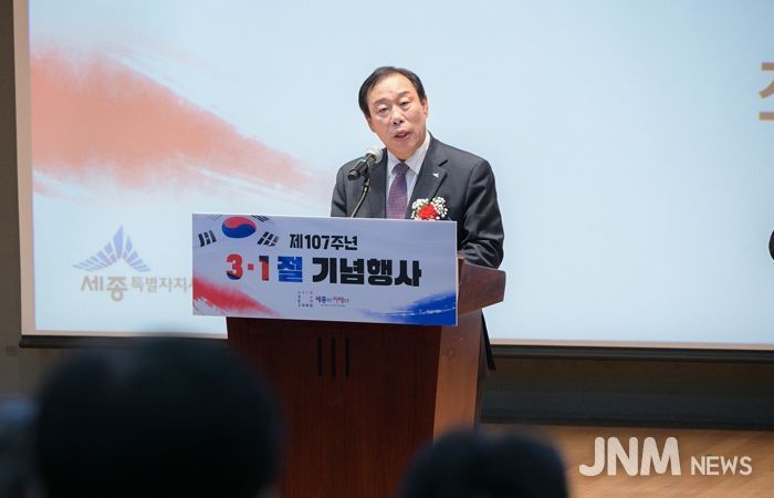 제이앤엠뉴스 | 세종특별자치시는 3·1절 107주년을 맞아 시청 여민실에서 기념행사를 열었다. 이날 행사에서 최민호 세종시장은 3·1운동의 정신을 계승해 미래전략수도 실현에 매진하겠다는 의지를 밝혔다.
