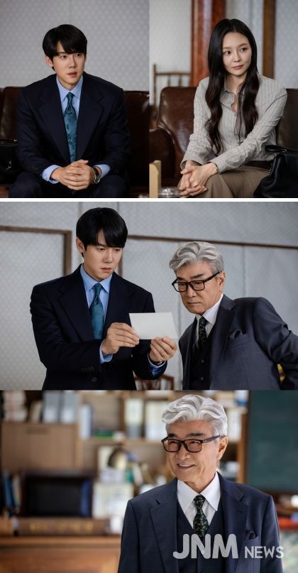 오늘 공개된 스틸컷에서는 대형 로펌 ‘태백’을 떠난 한나현이 신이랑과 함께 법률사무소에서 모습을 드러냈다. 두 변호사가 함께 바라보는 인물로 이덕화가 등장해 눈길을 끈다. 이덕화는 중후한 정장 차림으로 등장해 강렬한 존재감을 드러냈으며, 신이랑과 함께 의문의 사진을 바라보는 장면이 공개됐다. 이덕화가 사건을 의뢰하러 온 인물인지, 아니면 신이랑에게만 보이는 망자인지에 대한 궁금증이 커지고 있다.