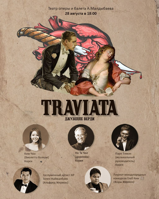 라트라비아타는 우리나라에서 처음 공연된 유럽 오페라 베르디의 작품이다. 트라비아타란 ‘길을 잘못 든 여자’라는 뜻으로 의미심장한 제목처럼 사교계 여성과 평범한 청년의 비극적이면서도 슬프고도 아름다운 사랑 이야기다. 베르디의 사회의 이중윤리, 인습에 대한 저항을 담은 걸작 라트라비아타는 관객에게 젊음과 아름다움의 덧없음, 신분의 차별과 죽음에 관한 깊이 있는 성찰을 하게 해 준다는 것이 베르디 최고의 걸작으로 꼽히는 이유이다.