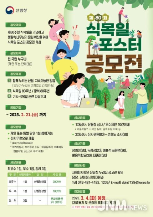 제이앤엠뉴스 | 산림청은 오는 2월 21일까지 ‘제80주년 식목일 기념 포스터 공모전’을 개최한다고 밝혔다.