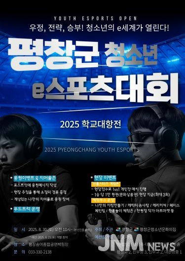 제이앤엠뉴스 | 평창군과 평창군청소년문화의집(관장 박선영)은 30일 오전 10시 평창송어종합공연체험장에서‘평창군 청소년 e스포츠대회(2025학교대항전)’을 개최한다.
