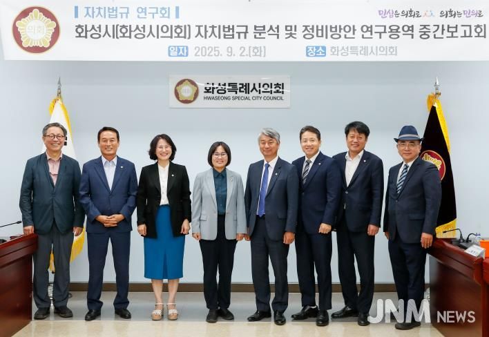제이앤엠뉴스 | 화성특례시의회 의원연구단체인 ‘자치법규 연구회’가 2일 상임위원회 회의실에서 연구용역 중간보고회를 가졌다.