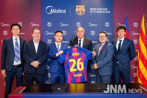 바르셀로나, 스페인 2025년 9월 3일 -- 제이앤엠뉴스 | 세계 1위 스마트 가전 브랜드 메이디(Midea)가 2026/2027 시즌부터 라리가 및 코파 델 레이 챔피언인 FC 바르셀로나의 메인 파트너로 합류한다고 밝혔다. 5시즌간 이어질 역사적인 이번 계약을 통해 메이디 로고는 FC 바르셀로나의 모든 경기 유니폼과 훈련복 소매에 부착되어 라리가 홈 경기 중 광범위한 브랜드 노출 기회를 갖게 된다.