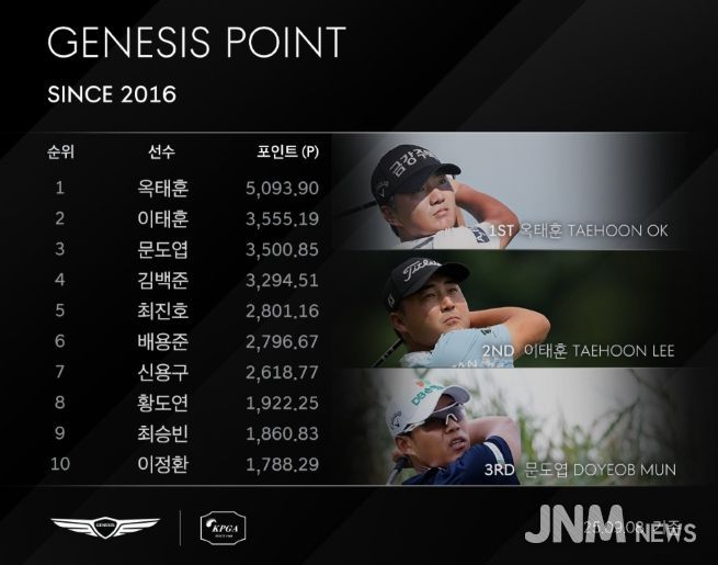 다음 달 23일부터 26일까지는 충남 천안 소재 우정힐스CC에서 KPGA 투어와 DP월드투어 공동주관 대회인 ‘제네시스 챔피언십’이 열린다. ‘제네시스 챔피언십’에는 ‘제네시스 챔피언십’ 직전 대회 종료 기준 제네시스 포인트 상위 36명의 선수가 출전 자격을 얻는다.