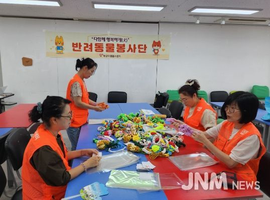 제이앤엠뉴스 | 부산북구자원봉사센터(센터장 강성환) 반려동물봉사단 ‘다함께 행복하개(犬)’는 지난 15일 부산 강서구 부산동물보호센터를 방문해 반려동물 양말목 장난감 50세트를 전달했다고 밝혔다.