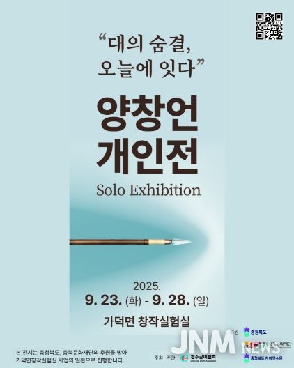 제이앤엠뉴스 | 충북문화재단은 전통 화살 제작 명인 양창언 작가의 개인전 '대의 숨결, 오늘에 잇다'를 9월 23일부터 9월 28일까지 자치연수원 가덕면 창작실험실에서 개최한다.