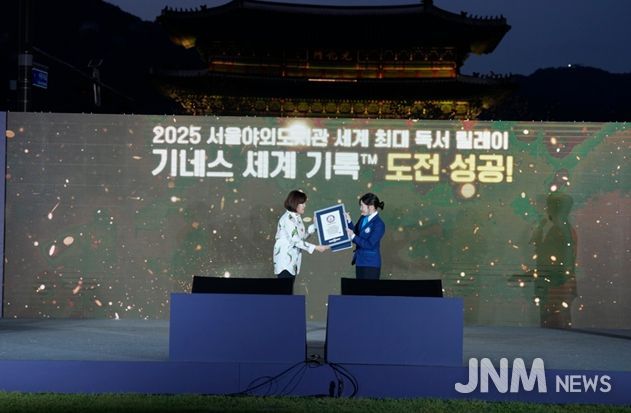 제이앤엠뉴스 | 서울시는 광복 80주년과 윤동주 시인 서거 80주년을 기념해 9월 27일 광화문광장에서 개최한 ‘세계 최대 독서릴레이(Most people in a reading relay)’ 기네스 세계 기록™ 도전에 최종 성공했다고 밝혔다. 이로써 ‘세계 최대 독서 릴레이’ 기네스 세계 기록™ 보유국은 대한민국이 됐다.