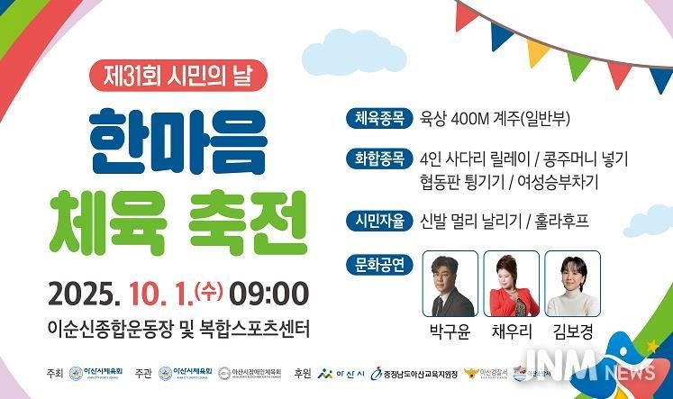 제이앤엠뉴스 | 아산시는 오는 10월 1일 이순신종합운동장에서 ‘제31회 시민의 날 한마음 체육축전’을 개최한다.