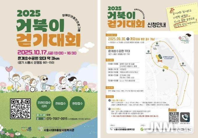 제이앤엠뉴스 | 시흥시는 오는 10월 17일 오후 1시부터 은계호수공원 일대에서 장애인과 비장애인이 함께 걷고 소통하며 문화를 즐기는 ‘거북이 걷기대회’를 연다. 이번 행사는 시흥시대야종합사회복지관이 주관한다.
