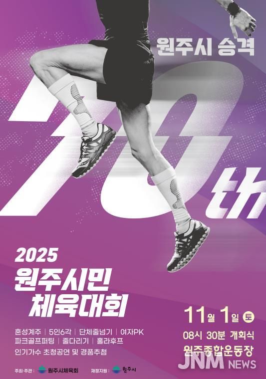 ‘2025 원주시민 체육대회’는 시 승격 70주년을 기념해 시민 간 소통과 화합을 도모하고, 지역사회 결속력을 강화하기 위해 마련됐다. 대회는 원주시체육회가 주최·주관하며, 오는 11월 1일 원주종합운동장에서 개최될 예정이다.