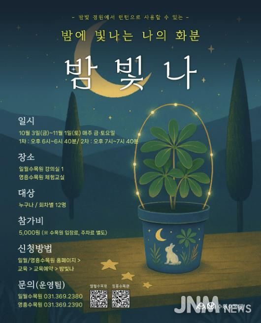 제이앤엠뉴스 | 수원특례시는 일월·영흥 수목원에서 10월 3일부터 11월 1일까지 매주 금·토요일 야간에 열리는 행사 ‘밤빛정원’에서 다양한 체험 프로그램들을 운영한다.