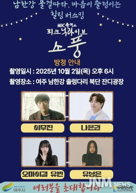 제이앤엠뉴스 | 여주시는 오는 10월 2일 오후 6시에 여주 남한강 출렁다리 북단 잔디광장에서 MBC플러스 음악 프로그램 '피크닉 라이브 소풍' 공연을 진행한다고 밝혔다.