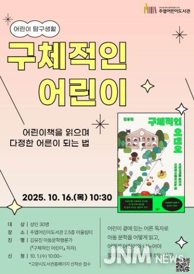 제이앤엠뉴스 | 고양특례시 주엽어린이도서관은 오는 10월 16일과 11월 5일 성인을 대상으로 인문학 강연‘어린이 탐구생활’을 진행한다고 밝혔다.