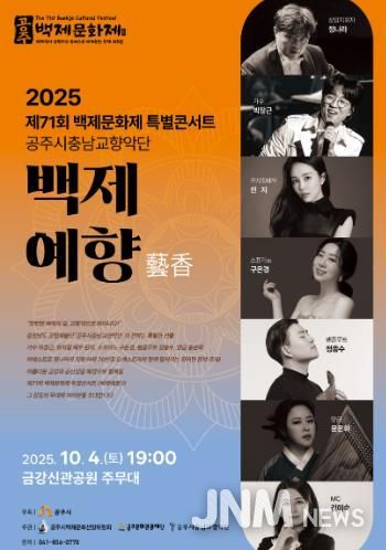 제이앤엠뉴스 | 공주시충남교향악단은 제71회 백제문화제를 맞아 오는 10월 4일 저녁 7시, 공주 금강신관공원 주무대에서 특별콘서트 ‘백제 예향’을 개최한다고 밝혔다.