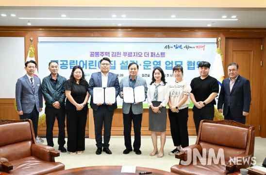 제이앤엠뉴스 | 김천시는 9월 29일 2층 접견실에서 공동주택 김천 푸르지오 더 퍼스트 어린이집 입주자대표회의(회장 유민상)와 국공립어린이집 설치‧운영을 위한 업무협약을 체결했다.
