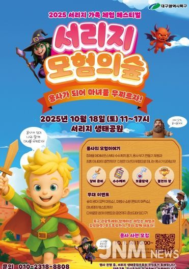 제이앤엠뉴스 | 대구 북구청은 오는 10월 18일 동호동 서리지 생태공원 일원에서 '2025 서리지 가족 체험 페스티벌 – 서리지, 모험의 숲'을 개최한다고 밝혔다.