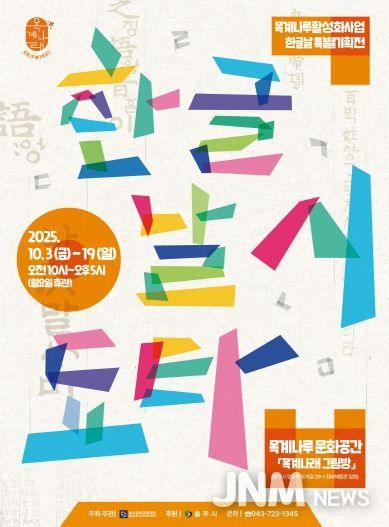 제이앤엠뉴스 | 충주문화관광재단은 오는 10월 3일, 목계나루문화공간(강배체험관) 일원에서 시민과 함께하는 특별 기획전'한글날시됴타'를 개최한다고 밝혔다.