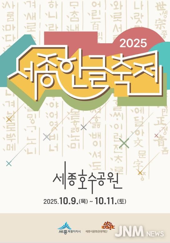 제이앤엠뉴스 | 세종특별자치시가 오는 9일 한글날을 시작으로 11일까지 3일간 세종호수공원 일원에서 ‘2025 세종한글축제’를 개최한다고 밝혔다.