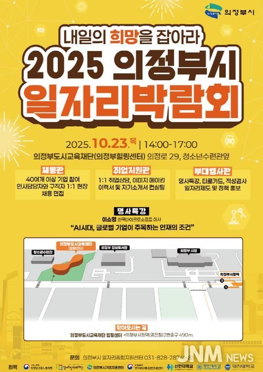 제이앤엠뉴스 | 의정부시는 10월 23일 오후 2시 의정부도시교육재단 힐링센터(의정로 29, 청소년수련관 옆)에서 ‘2025 의정부시 일자리 박람회’를 개최한다.