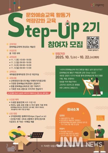 제이앤엠뉴스 | (재)구미문화재단은 문화예술교육 활동가 역량강화 교육 프로그램 'Step-Up' 2기 참여자를 오는 10월 1일부터 22일까지 모집한다고 밝혔다.