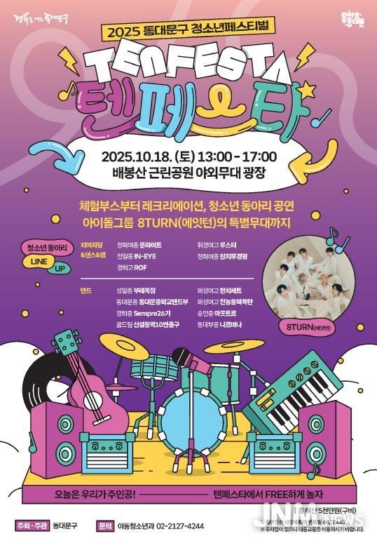 제이앤엠뉴스 | 서울 동대문구는 오는 18일 오후 1시부터 5시까지 배봉산근린공원 열린광장에서'2025 동대문구 청소년 페스티벌 ‘텐 페스타(TEN FESTA)’'를 개최한다고 밝혔다.