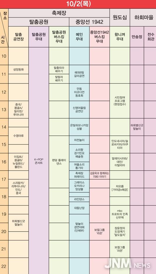 안동시는 “일곱째 날은 전통 탈춤, 해외공연, 그리고 K-POP 무대가 함께 어우러져 남녀노소 누구나 즐길 수 있는 다채로운 날”이라며, “특히 한류관광페스타는 국내외 관광객을 아우르는 대표 프로그램이 될 것”이라고 밝혔다.