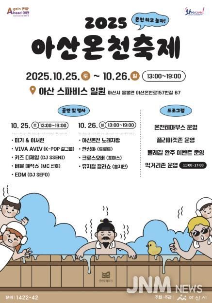 제이앤엠뉴스 | 아산시가 주최하는 ‘2025 아산온천축제’가 오는 10월 25일부터, 26일까지 이틀간 아산스파비스 일원에서 열린다.
