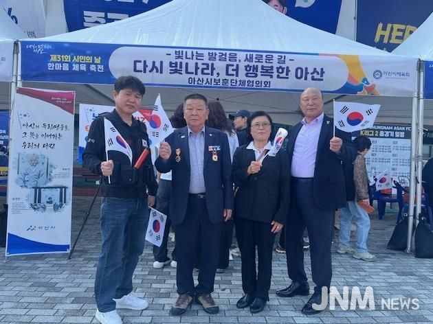 제이앤엠뉴스 | 아산시는 1일, 광복80주년 및 제31회 시민의 날을 기념하여 열린 한마음 체육축전에서 시민들을 대상으로 호국보훈 체험 홍보 부스를 운영했다고 밝혔다.