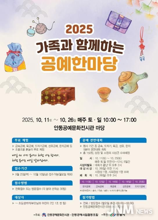 제이앤엠뉴스 | 안동공예문화전시관(안동공예사업협동조합)이 주최하고 안동시가 후원하는 ‘2025 공예한마당’ 행사준비가 한창이다.