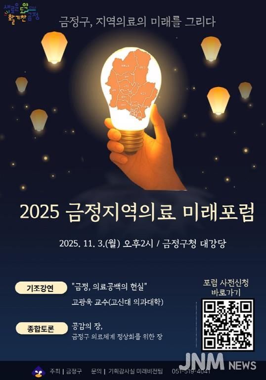 제이앤엠뉴스 | 부산시 금정구는 오는 11월 3일 금정구청 1층 대강당에서 침례병원 파산 이후 지속되어 온 지역 의료공백 문제를 논의하고 의료체계 정상화 방안을 모색하기 위해 '금정 지역의료 미래 포럼'을 개최한다.