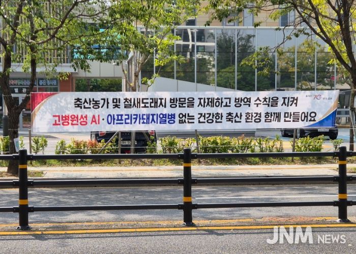 제이앤엠뉴스 | 김포시는 다가오는 추석 명절을 맞아 축산농가의 가축전염병 발생을 사전에 방지하고자 가축전염병 예방을 위한 홍보 현수막을 게시하고, 축산 농가를 대상으로 가축전염병 차단방역 수칙을 집중 홍보했다고 밝혔다.