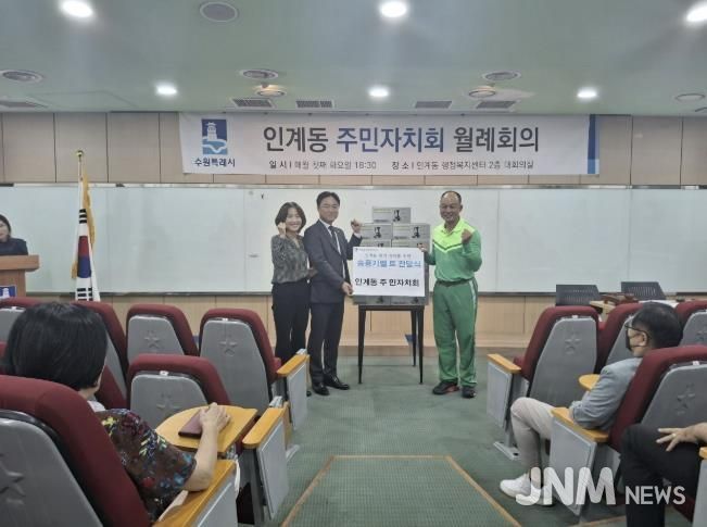 제이앤엠뉴스 | 수원시 팔달구 인계동 주민자치회는 지난 10월 1일, 가을철 관내 낙엽청소용 송풍기 벨트(100만 원 상당)를 인계동 행정복지센터에 전달했다.