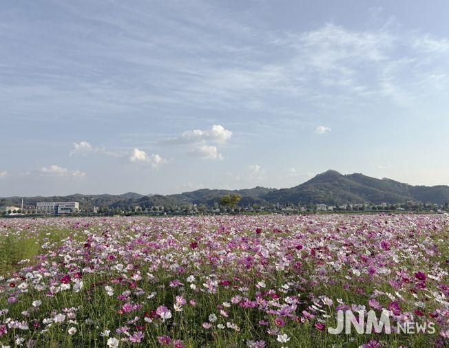 제이앤엠뉴스 | 안동시 낙동강변 초화단지와 그라스원이 올가을에도 코스모스와 핑크뮬리 등 다채로운 가을꽃으로 물들며 시민과 관광객들의 발길을 사로잡고 있다.