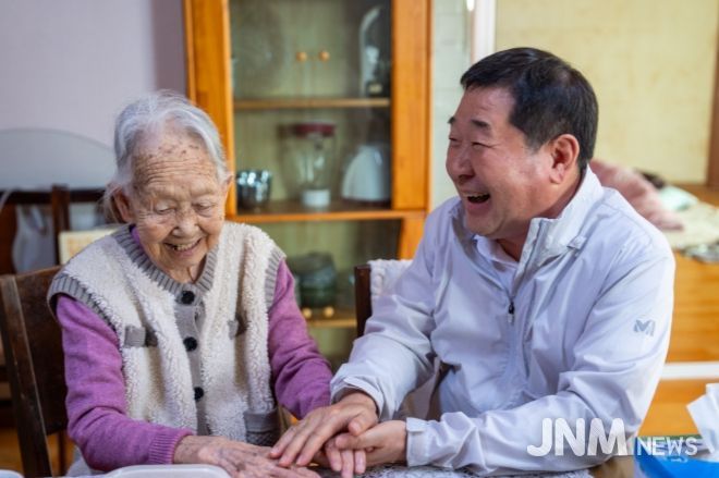 이날 이재영 군수는 100세 어르신께 청려장과 함께 감사 인사를 전하며 지역발전을 위해 헌신해온 노고에 존경의 뜻을 표했다.