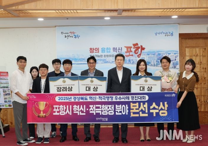 제이앤엠뉴스 | 포항시는 지난 26일 경상북도가 주관한 ‘2025년 경상북도 혁신 및 적극행정 우수사례 경진대회’에서 혁신·적극행정 분야 대상 2관왕과 혁신분야 장려상을 동시에 거머쥐었다.