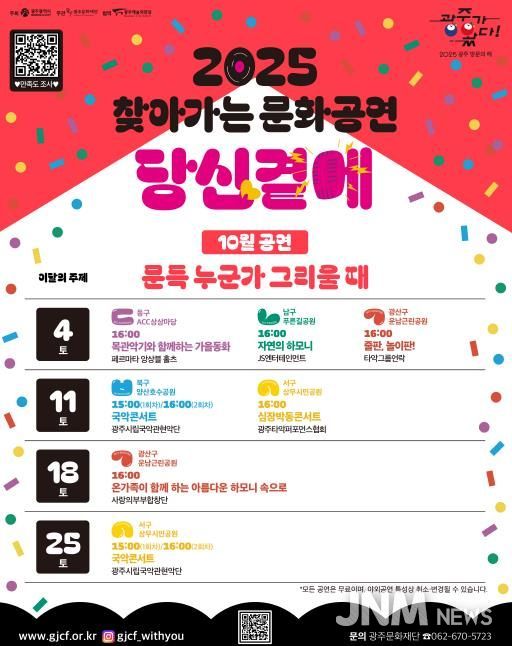제이앤엠뉴스 | 광주문화재단 ‘찾아가는 문화공연 '당신곁에'’ 10월 공연이 오는 4일부터 본격 시작한다.