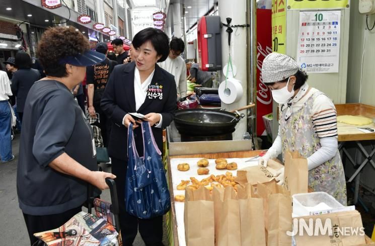신 의장은 “이번 장보기 행사가 경기 침체와 소비 위축으로 어려움을 겪고 있는 시장 상인들에게 조금이나마 힘이 됐으면 한다”며 “시민 여러분도 전통시장에서 민생쿠폰과 지역화폐 등을 활용해 품질 좋은 우리 농·수산물과 생활용품을 합리적인 가격에 구입하고, 동시에 지역경제에도 활력을 불어넣는 데 함께해 주시길 부탁드린다”고 말했다.