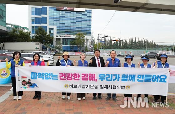 제이앤엠뉴스 | 바르게살기운동 김해시협의회는 2일 오전 8시 김해시청 앞 사거리에서 ‘마약 근절 및 예방을 위한 합동캠페인’을 개최했다.