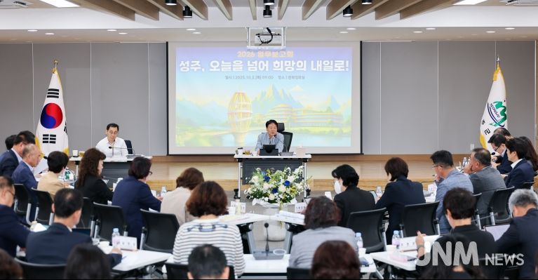 제이앤엠뉴스 | 성주군은 10월 2일 군청 문화강좌실에서 팀장급 이상 간부 공무원이 참석한 가운데‘2026 업무보고회’를 개최하고, 민선8기 마지막 해의 군정 운영 방향과 주요 과제를 점검했다.