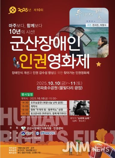 제이앤엠뉴스 | 군산시 장애인가족지원인권센터가 10월 10일부터 11일까지 은파호수공원 물빛다리 광장에서 군산시민을 대상으로 장애인 인식개선 및 인권의식 함양을 위한 2025년 제10회 군산장애인인권영화제를 개최한다.