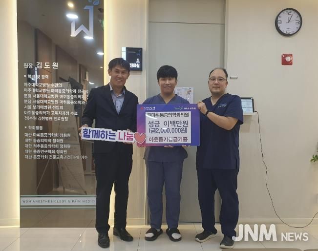 제이앤엠뉴스 | 양주시 양주2동이 지난 1일 관내 원마취통증의학과의원에서 추석을 맞이하여 이웃돕기 성금 200만 원을 양주2동에 기탁했다고 밝혔다.